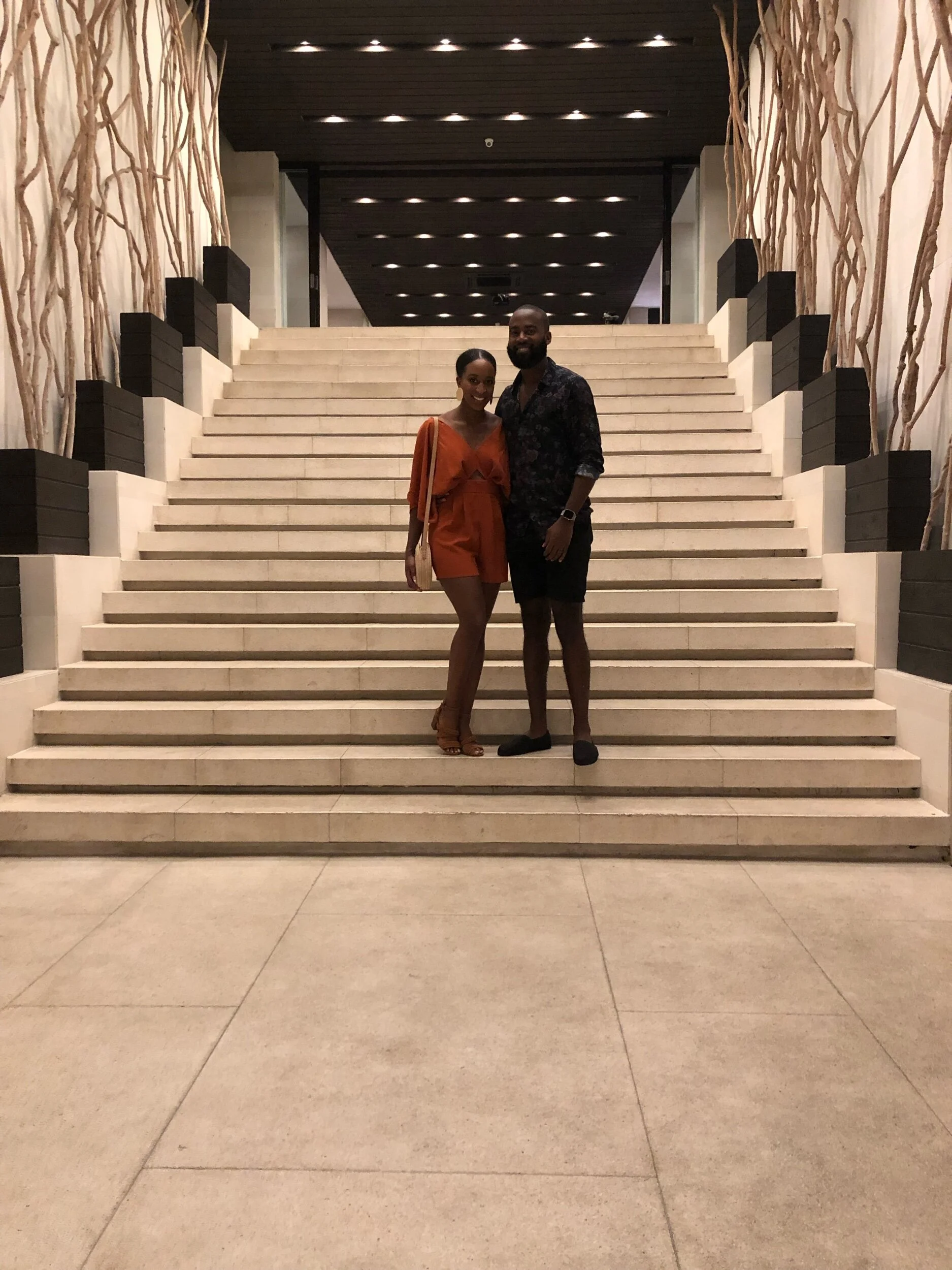 Grand staircase near the check-in area, and leading up to the restaurant and pool.