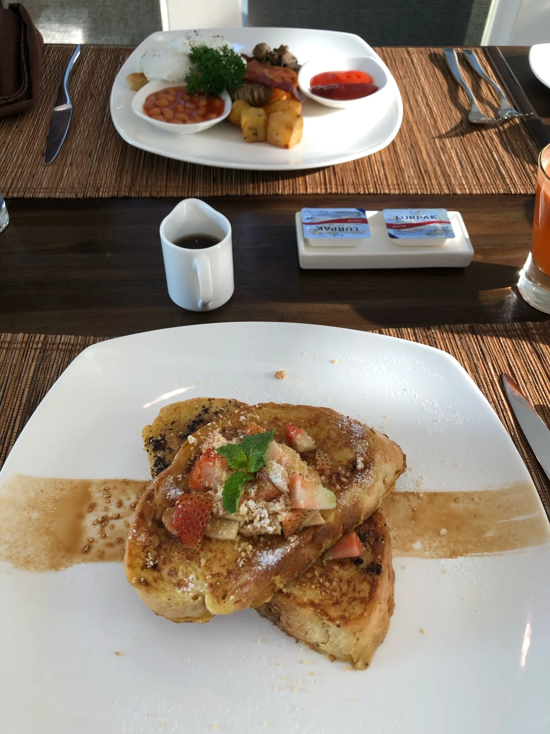 We enjoyed our breakfast in the upper part of the villa, overlooking the pool. Breakfast was included with the room.
